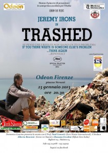A gennaio arriva in italia e viene presentato a Firenze il film ‘Trashed’, di Jeremy Irons, che segna un altro passo importante verso la piena presa di coscienza sulla necessità di un cambio di rotta mondiale rispetto al modello consumistico e capitalistico sfrenato che ha generato ad oggi solo invivibilità , insostenibilità, disastri ambientali e distruzione del pianeta.