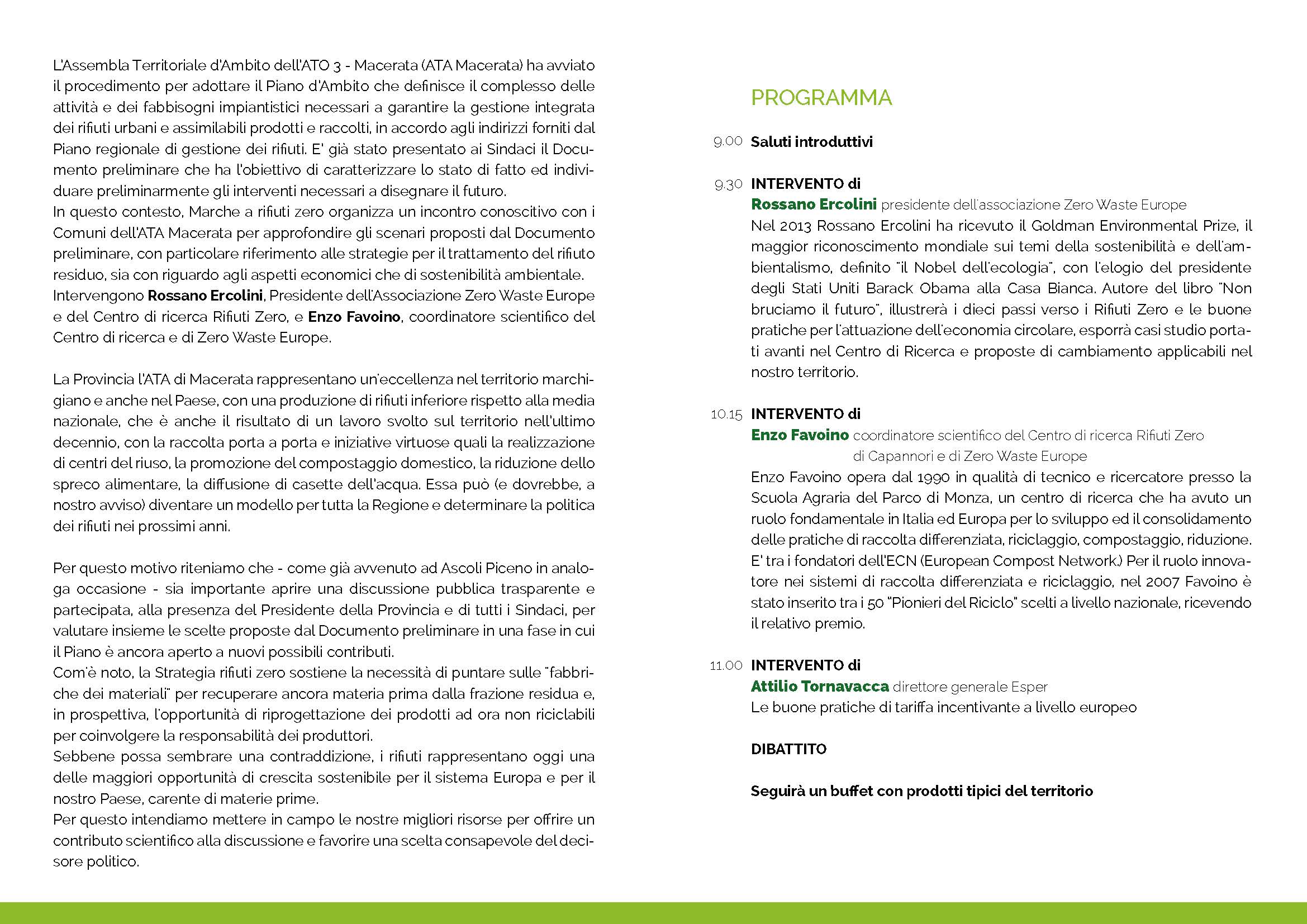 Sabato 21 Aprile 2018  alle ore 9:00 a Macerata Rossano Ercolini, Enzo Favoino, Attiglio Tornavacca