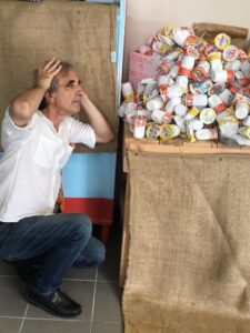 Dopo ripetute lettere a Ferrero finalmente nel luglio dell’anno scorso (in piena pandemia) avemmo un collegamento online con l’intero team dell’azienda che garantì che stava trovando delle soluzioni alternative. Nel frattempo l’unica soluzione ha riguardato la cannuccia non più in plastica ma in carta che a ragion veduta funziona male e di fatto viene raramente differenziata e gettata, quando va bene, nella plastica. Nel frattempo non passa giorno di avvistare un largo numero di bicchierini sparsi dovunque!
