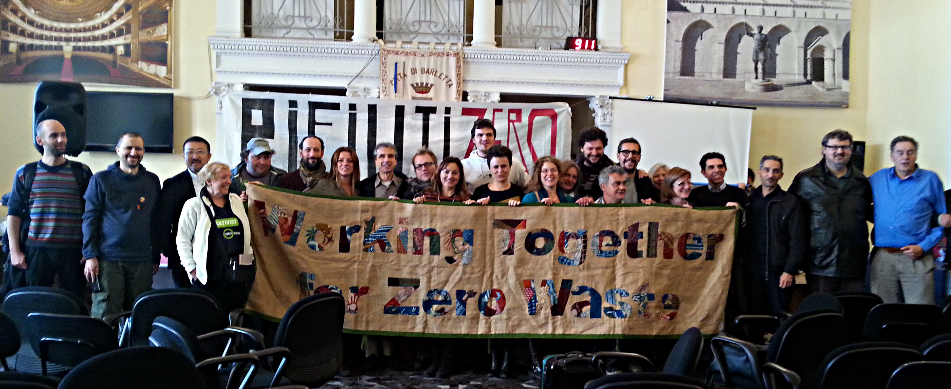 Per concludere la mattinata, il focus della discussione passa ad alcune realtà italiane in lotta contro la combustione di rifiuti e che propongono Rifiuti Zero come alternativa: intervengono Roberta Forte, vicesindaco di Galatina (LE); Francesco Caravella membro del Movimento Legge Rifiuti Zero Puglia e referente per l’associazione Capitanata Rifiuti Zero di Foggia; Paola Nuti, dall’Umbria, rappresentate del Comitato per la tutela ambientale della Conca Ecubina; Francesco Miazzi, dal Lazio, del Comitato Popolare “Lasciateci respirare”. Sono inoltre intervenuti rappresentati di altre realtà pugliesi come gli attivisti del comitato No Raddoppio Inceneritore – Corretta Gestione dei Rifiuti di Massafra (TA) e i membri di Artemia Salina di Margherita di Savoia (BAT), comune aderente a Rifiuti Zero.