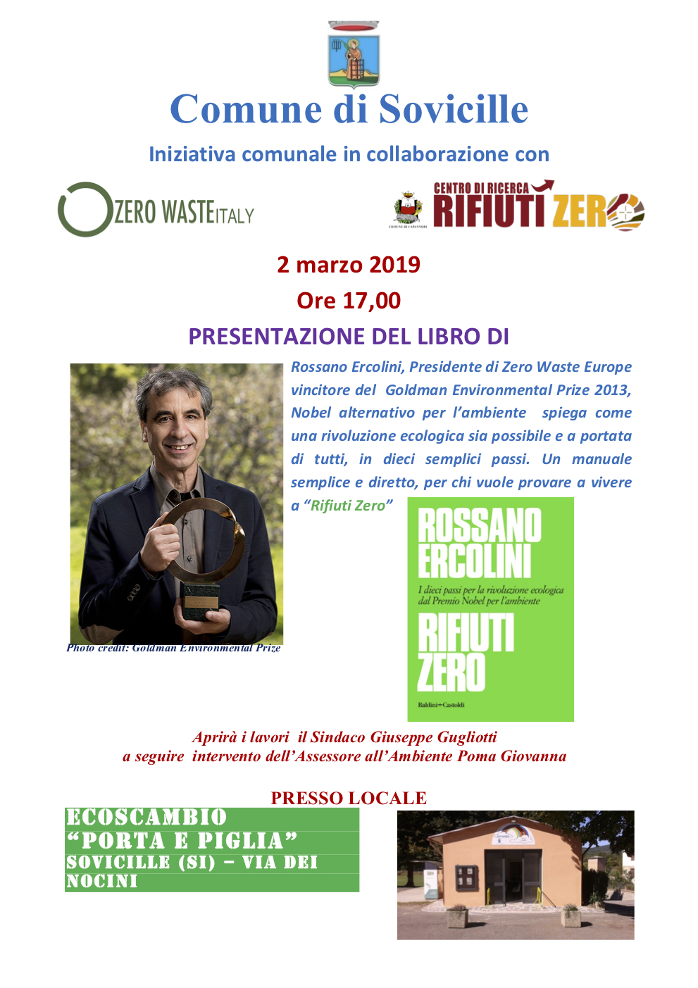 Rifiuti Zero, il libro di Rossano Ercolini: presentazioni in marzo